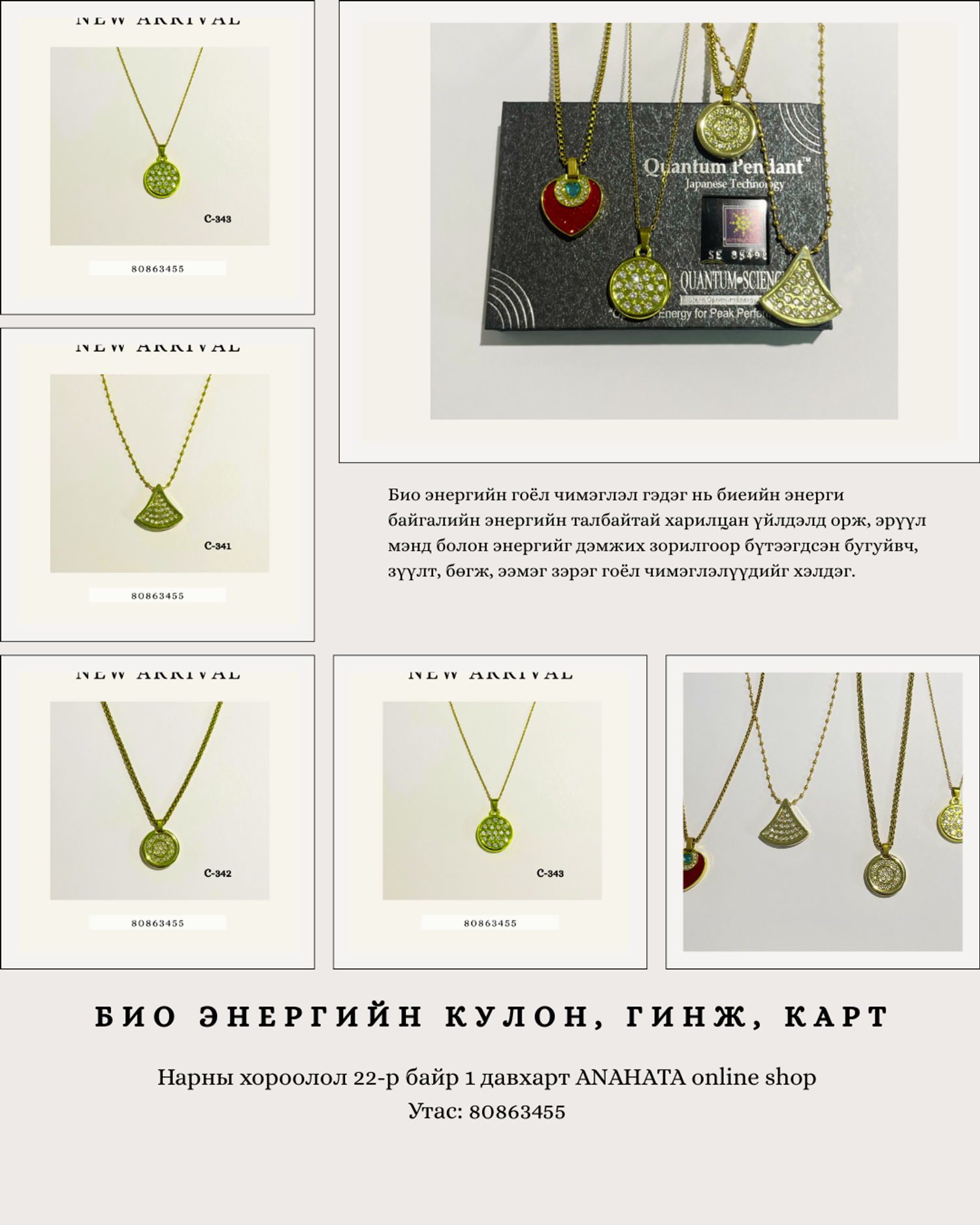 Био энергийн кулон, гинж, карт хайрцагтай Үнэ: 50,000 төг, Хүргэлт 6,000-10,000 төг 📍 Хаяг: Баянгол дүүрэг, Нарны хороолол, 22-р байр 1 давхарт Anahata online shop 📞 Утас: 80863455